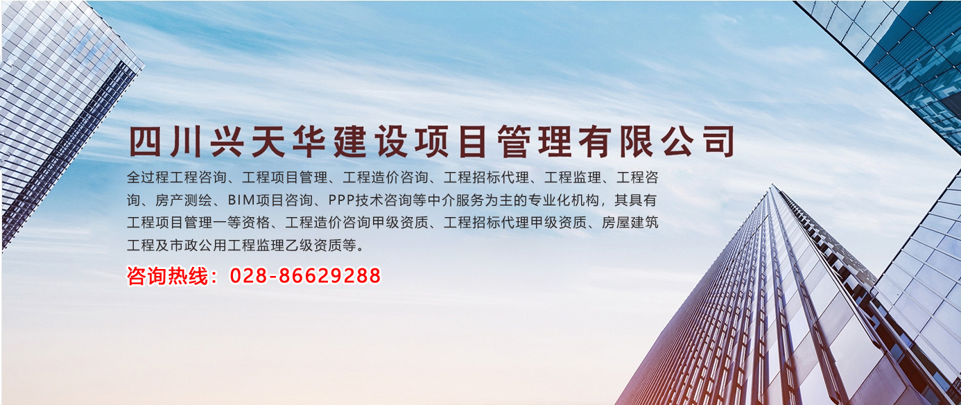 四川興天華建設項目管理有限公司(原名四川天華工程造價咨詢事務所有限公司)成立于2003年12月,是一家以全過程工程咨詢、工程項目管理、工程造價咨詢、工程招標代理、工程監(jiān)理、工程咨詢、房產測繪、BIM項目咨詢、PPP技術咨詢等中介服務為主的專業(yè)化機構,其具有工程項目管理一等資格、工程造價咨詢甲級資質、工程招標代...